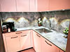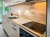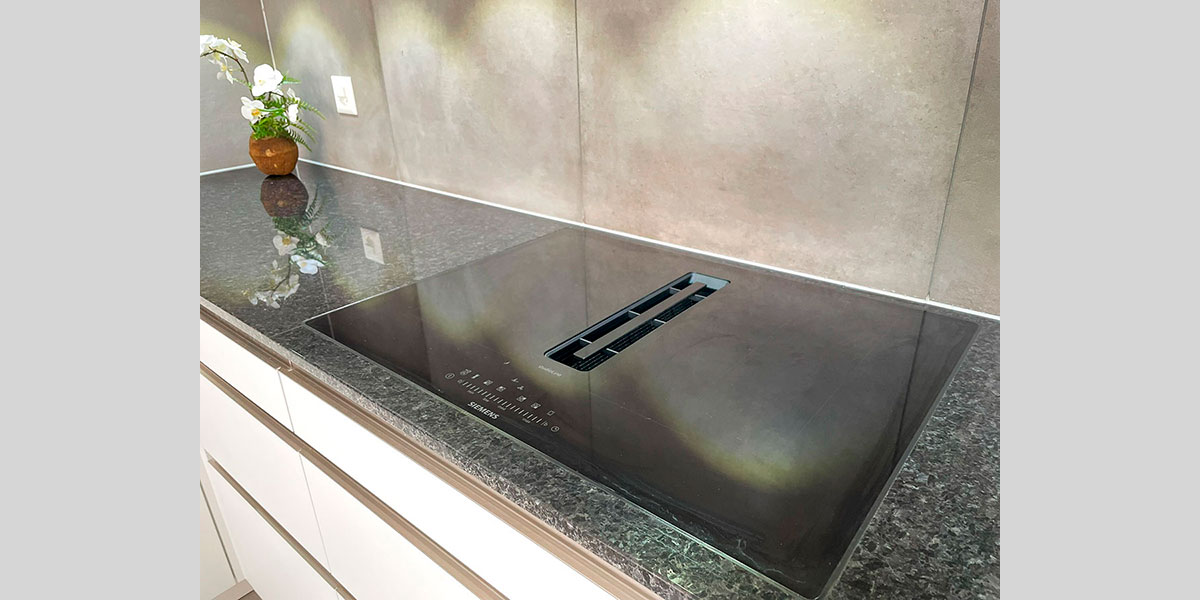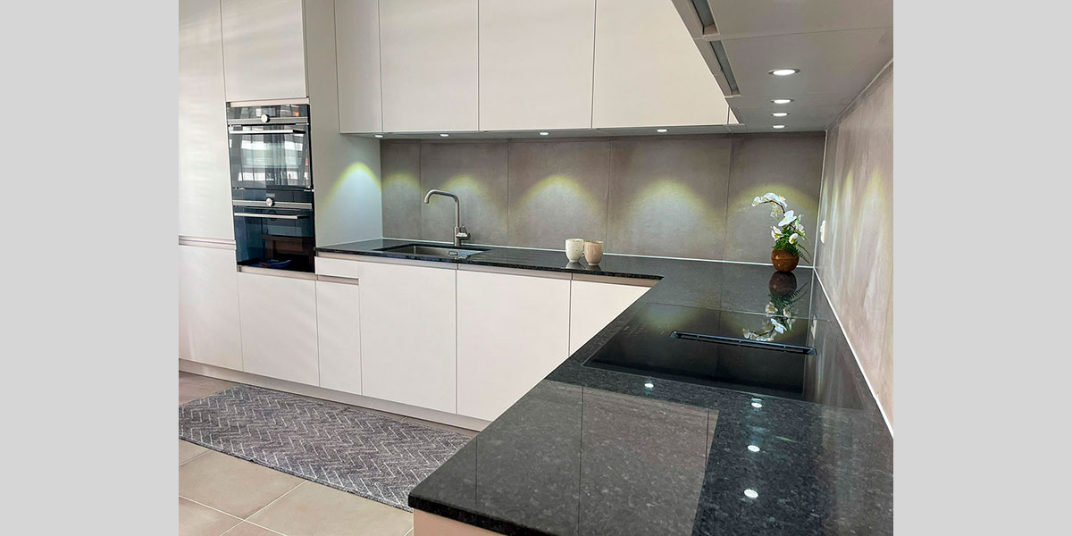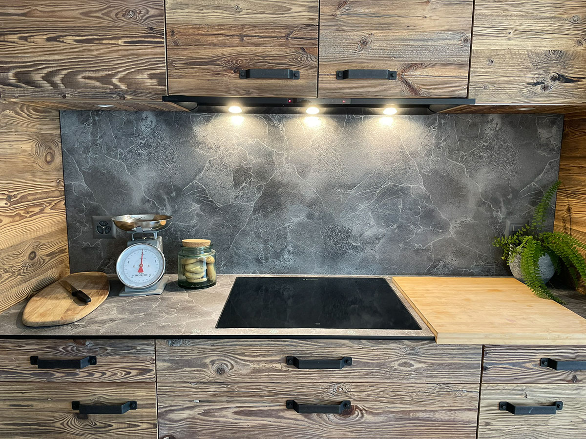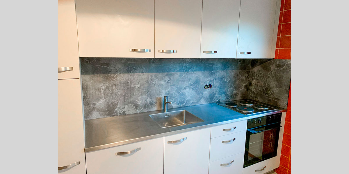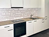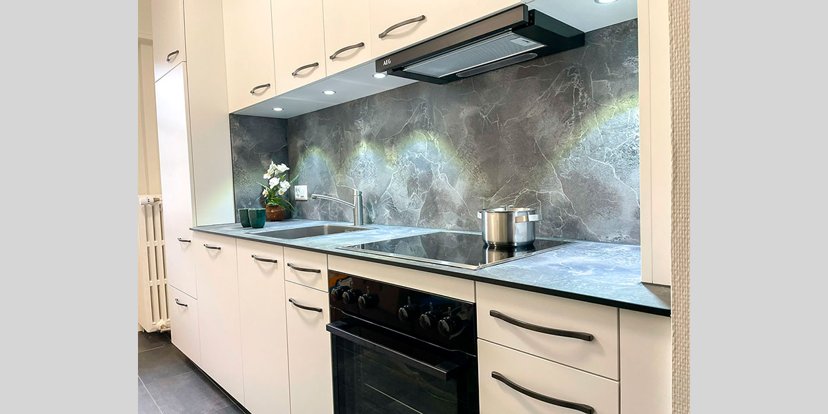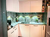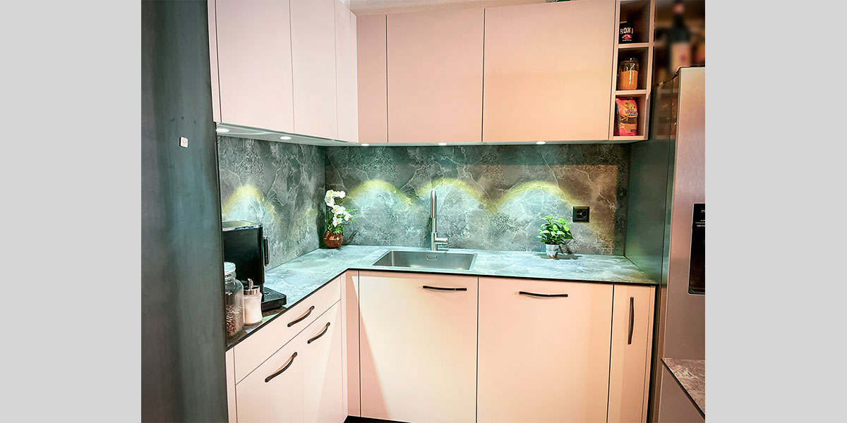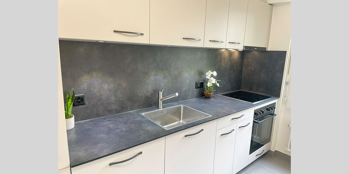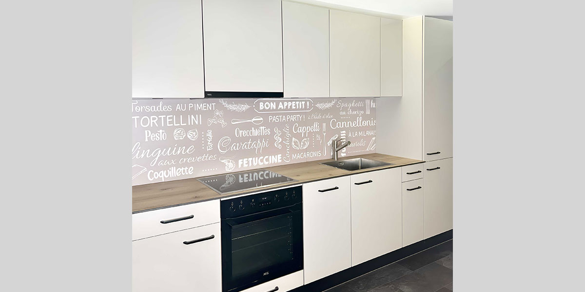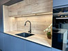 - De la crédence en céramique, quart, verre poli, inox ou composite faisant lien avec le plan de travail