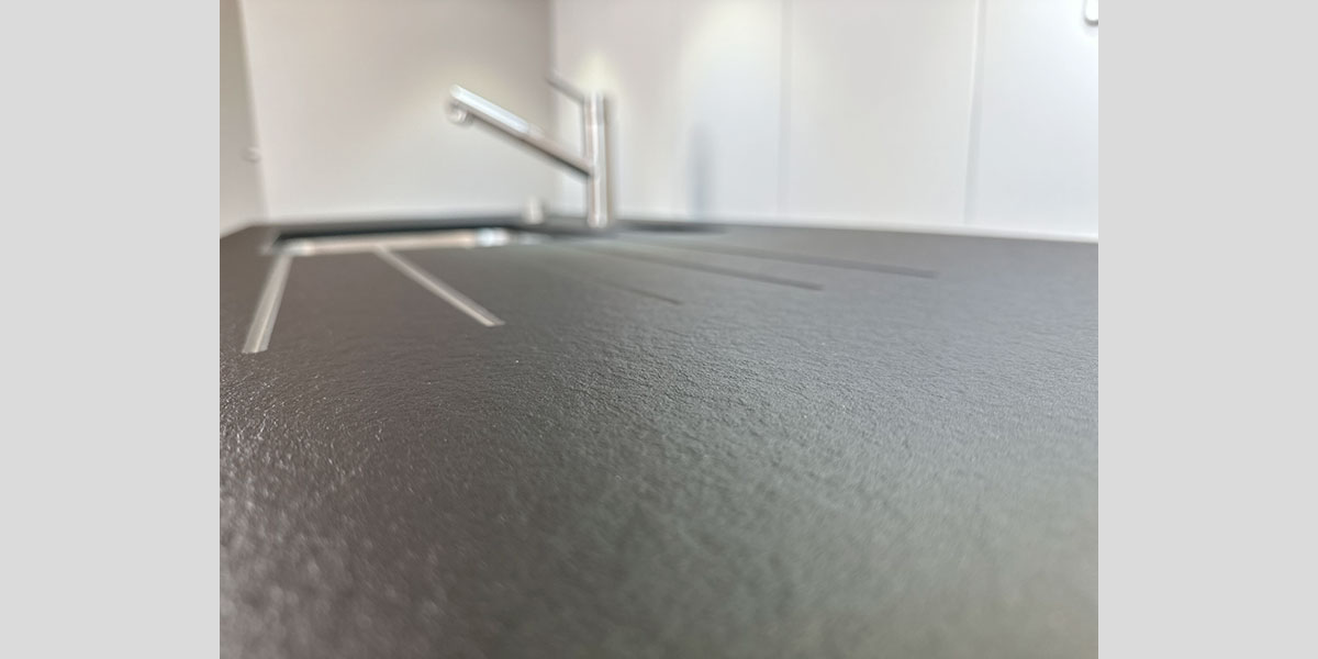 - De la robinetterie avec un mitigeur cuisine, douchette extractible incluse, au grand évier qui permet d’accueillir les plaques de fours en entier