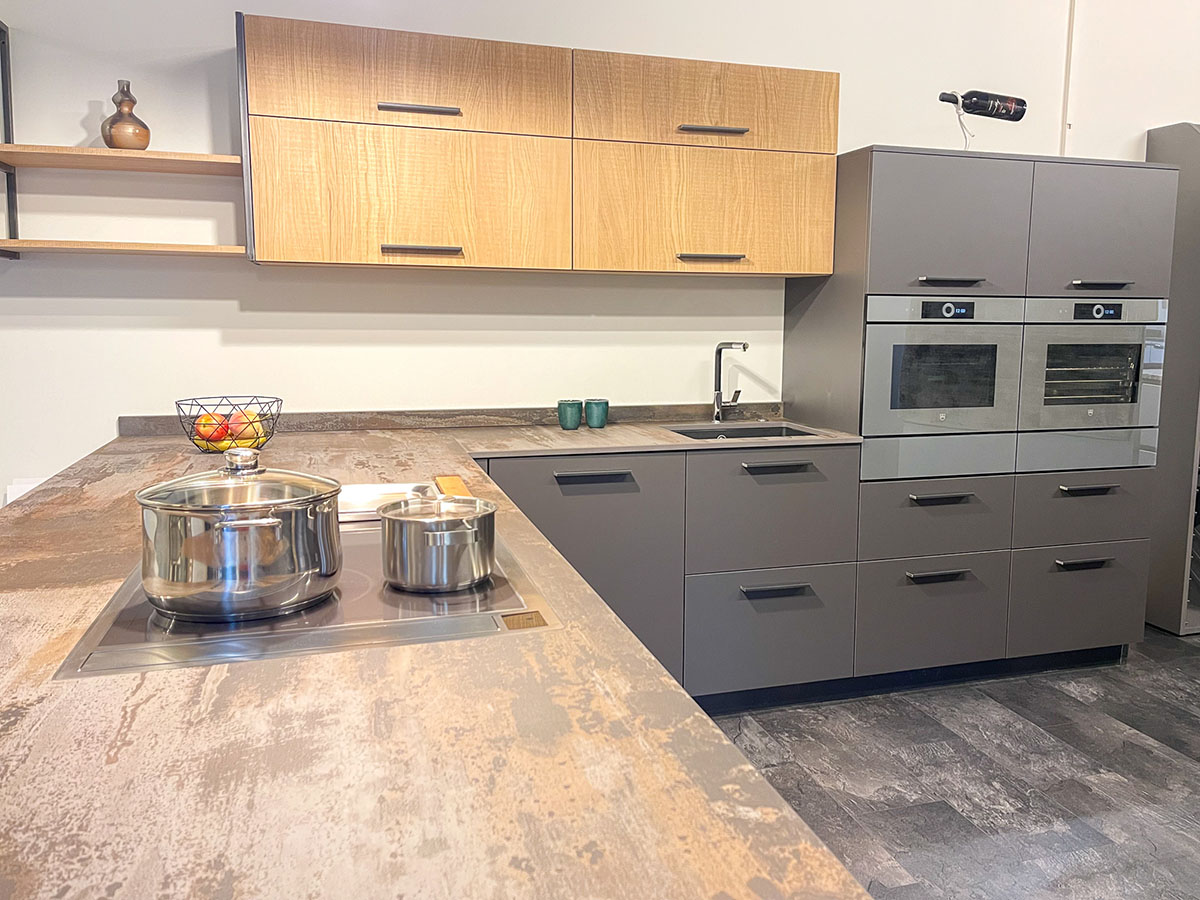 Notre échantillothèque de matériaux de cuisines offre une variété étendue de plans de travail, façades et autres éléments essentiels, permettant de voir et de sentir les matériaux pour une sélection précise en accord avec leurs préférences esthétiques et fonctionnelles.